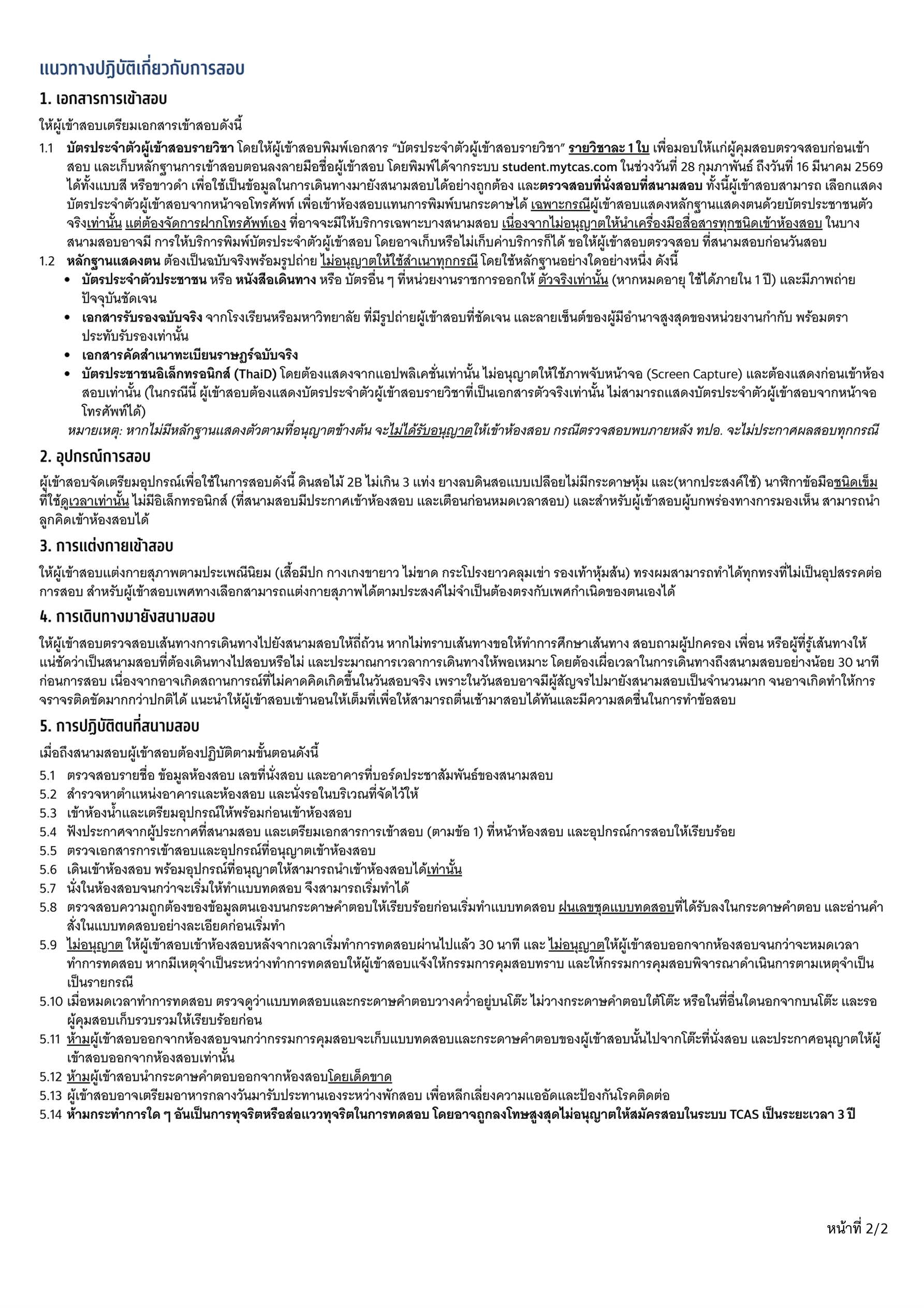 ผู้สมัครสอบโปรดอ่านแนวทางปฏิบัติเกี่ยวกับการสอบอย่างละเอียด