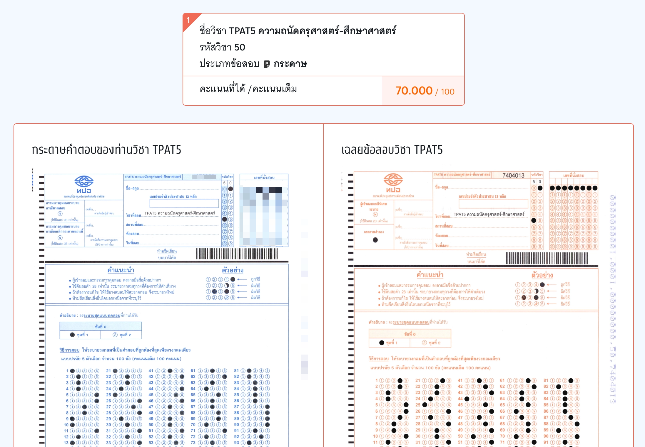 ตัวอย่างกระดาษคำตอบ วิชา TPAT5