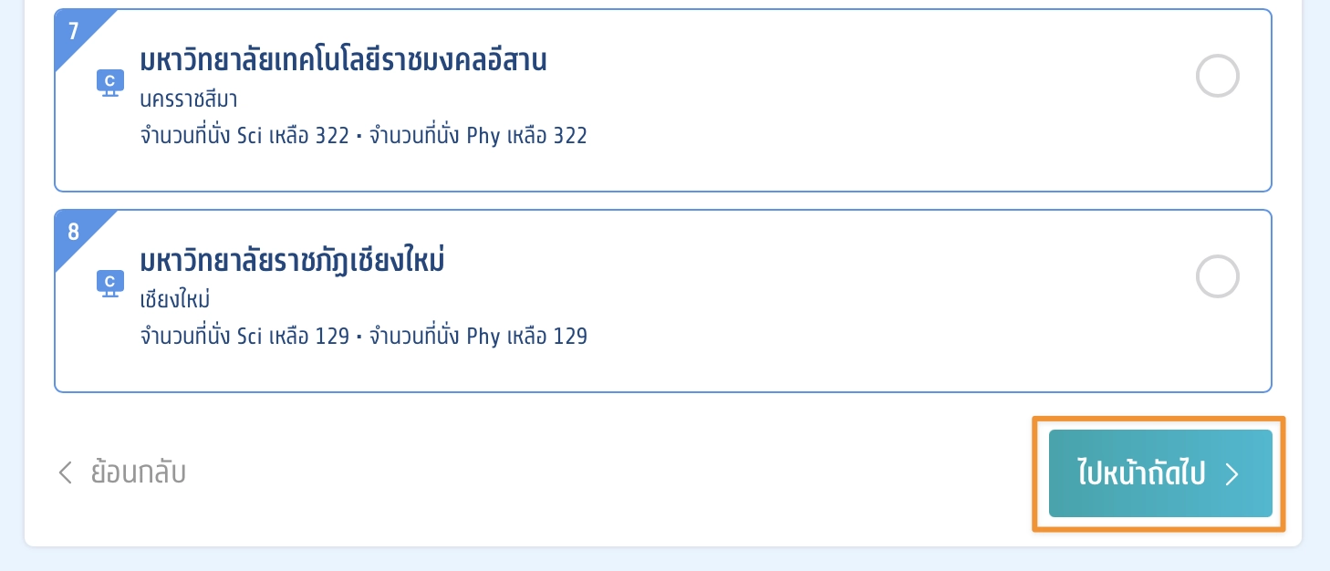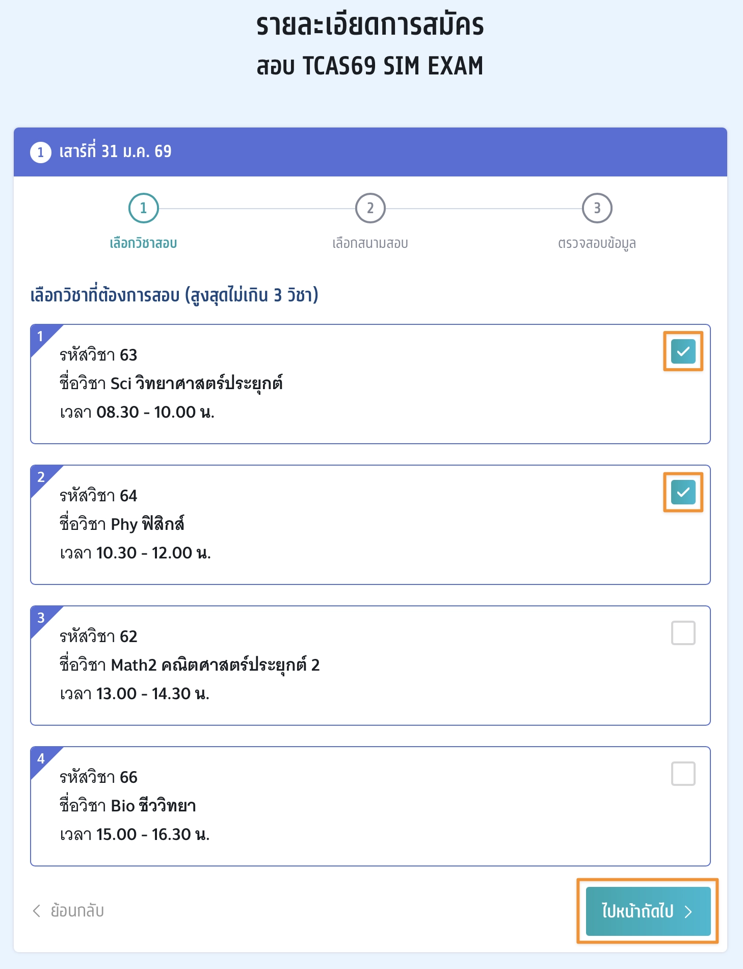 หลังจากนั้นให้ผู้สมัครเลือกวิชาสอบที่ต้องการ แล้วเลือก “ไปหน้าถัดไป”