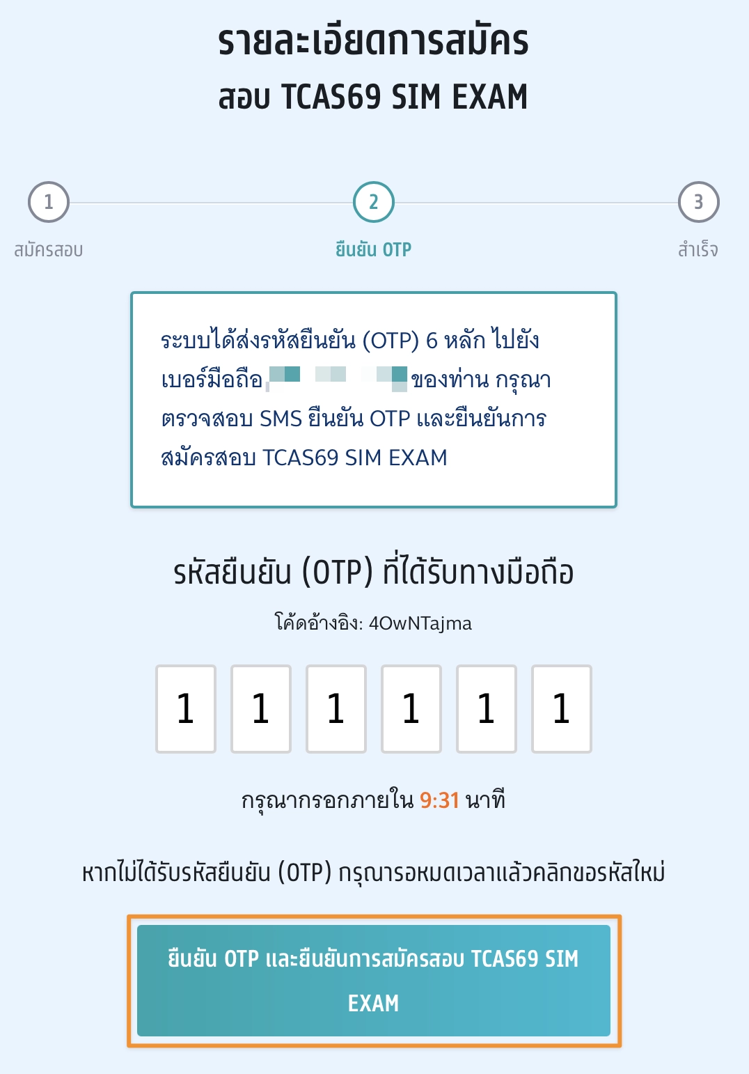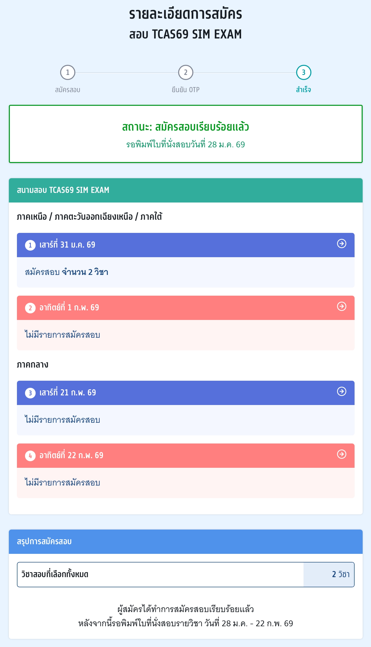 1. การสมัครสอบ TCAS69 SIM EXAM
