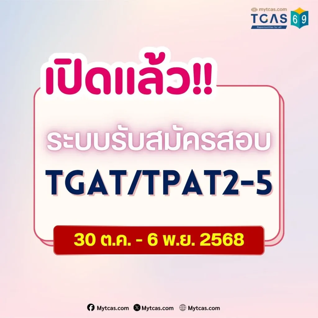 เปิดให้สมัครสอบแล้ว! TGAT/TPAT2-5 (TCAS69) ![]()