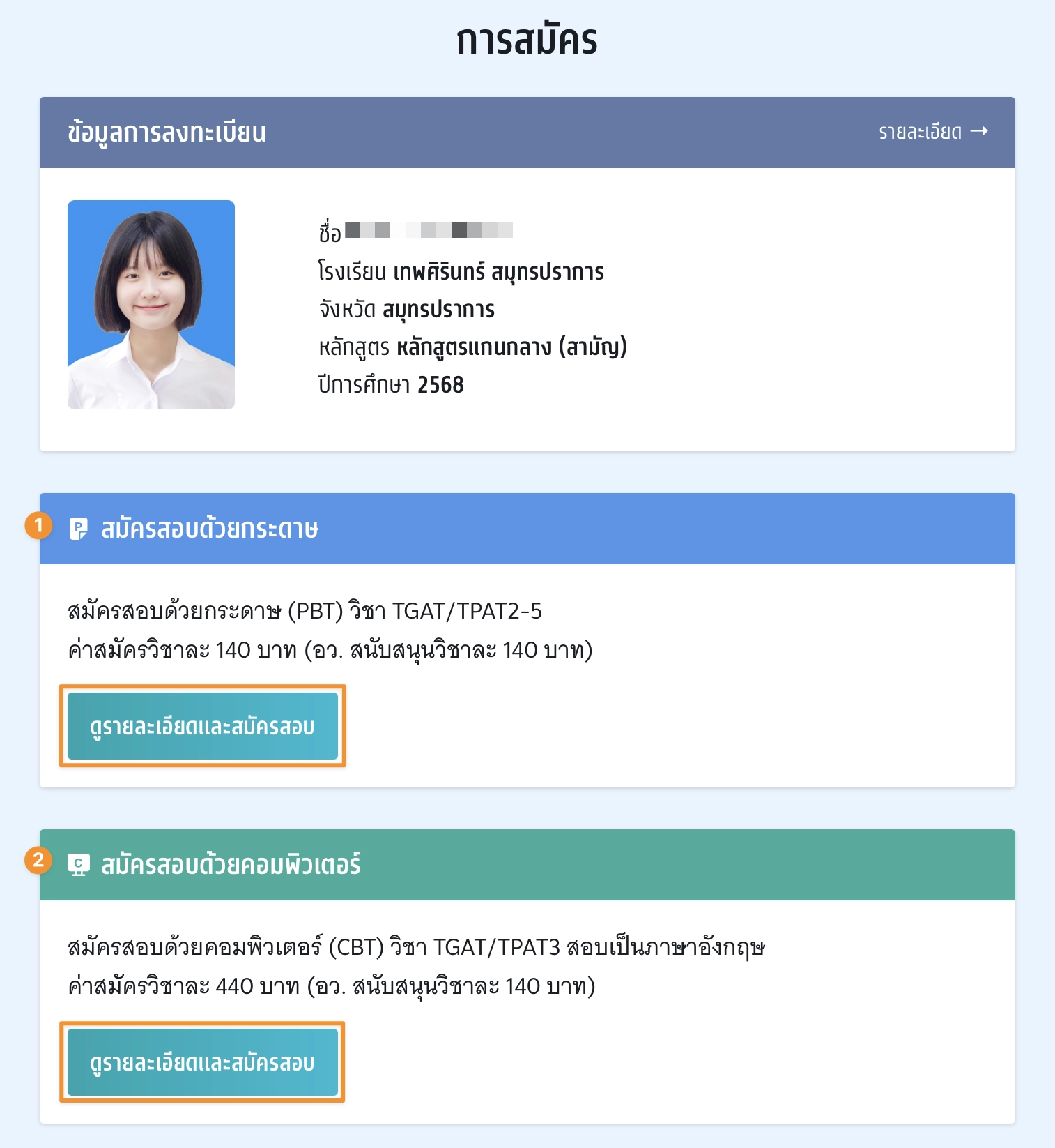 1. สมัครสอบด้วยกระดาษ (PBT) ประกอบด้วย วิชา TGAT/TPAT2-5