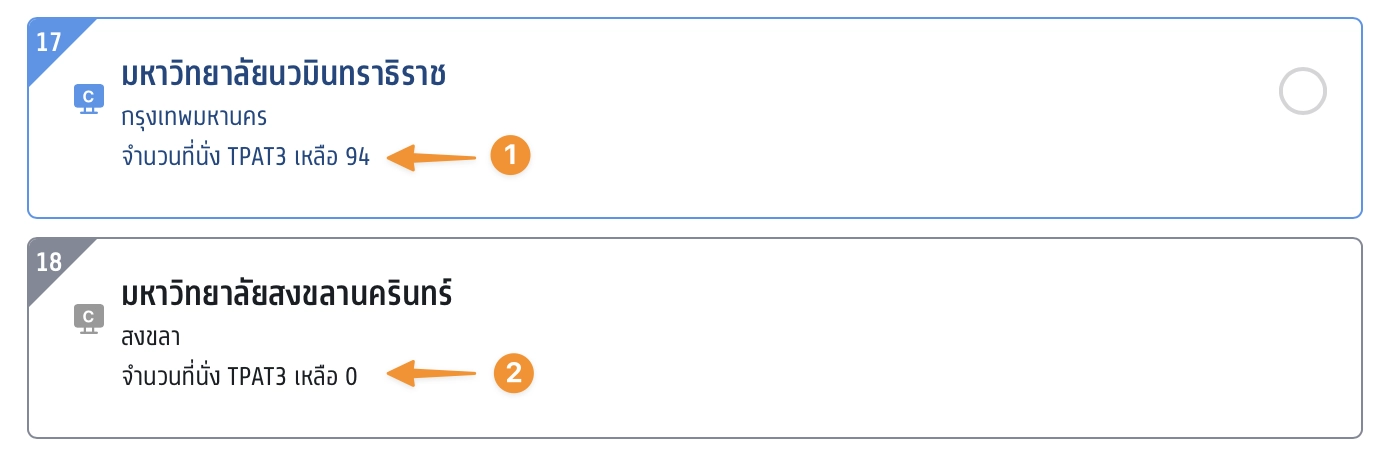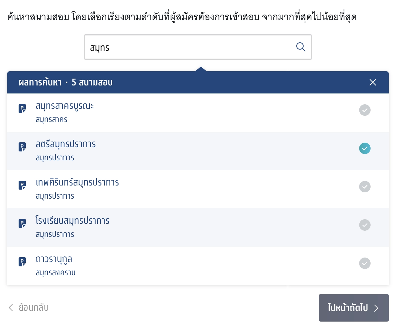- ไม่สามารถเลือกสนามสอบนี้ได้ เนื่องจากจำนวนที่นั่งเต็ม