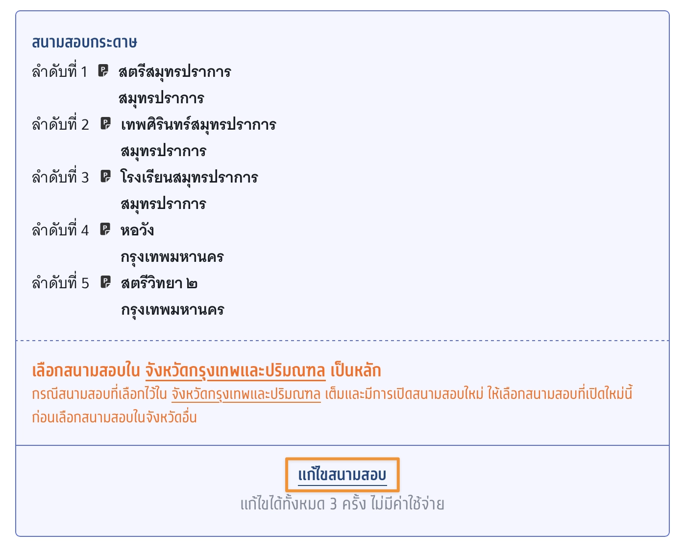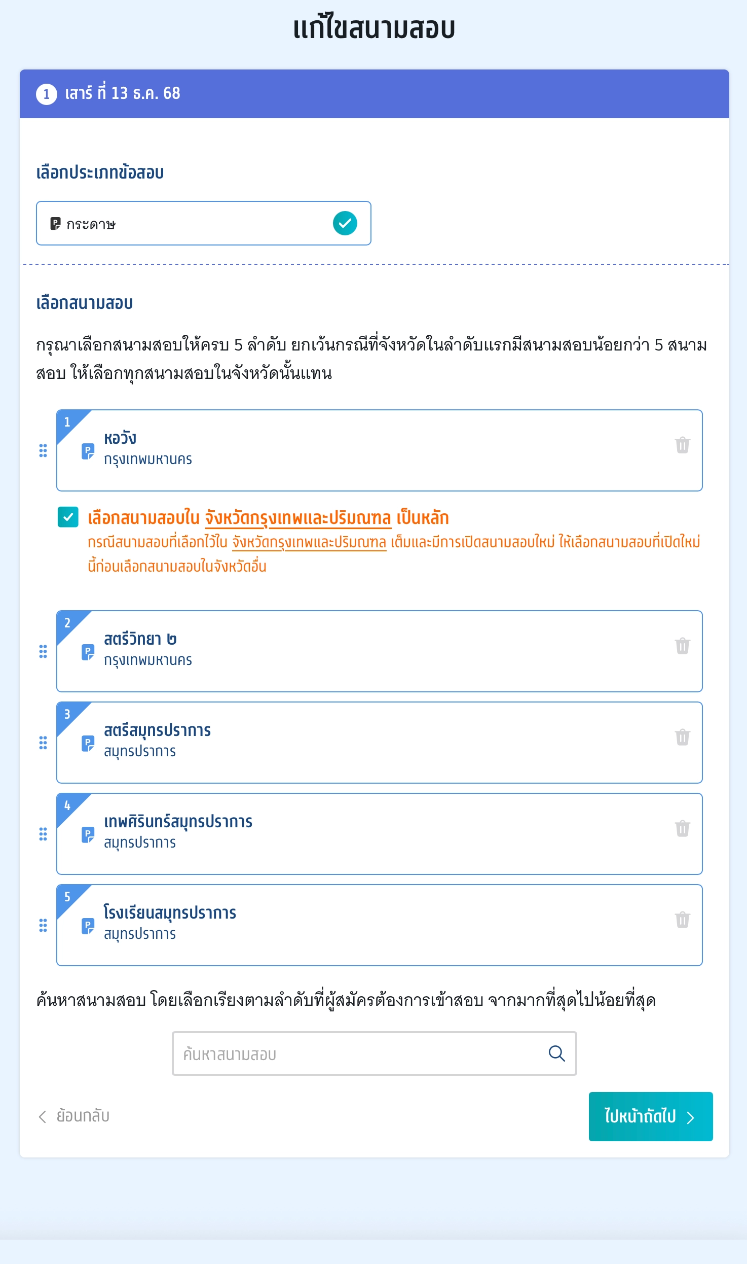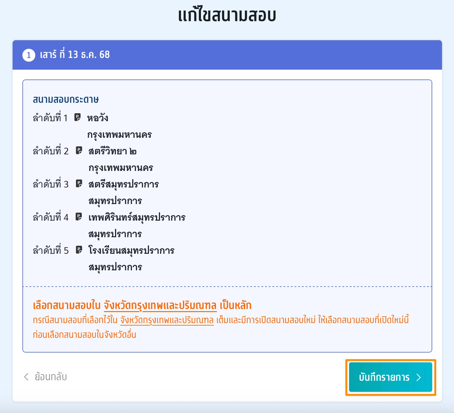 ให้ผู้สมัครเลือก “แก้ไขสนามสอบ”