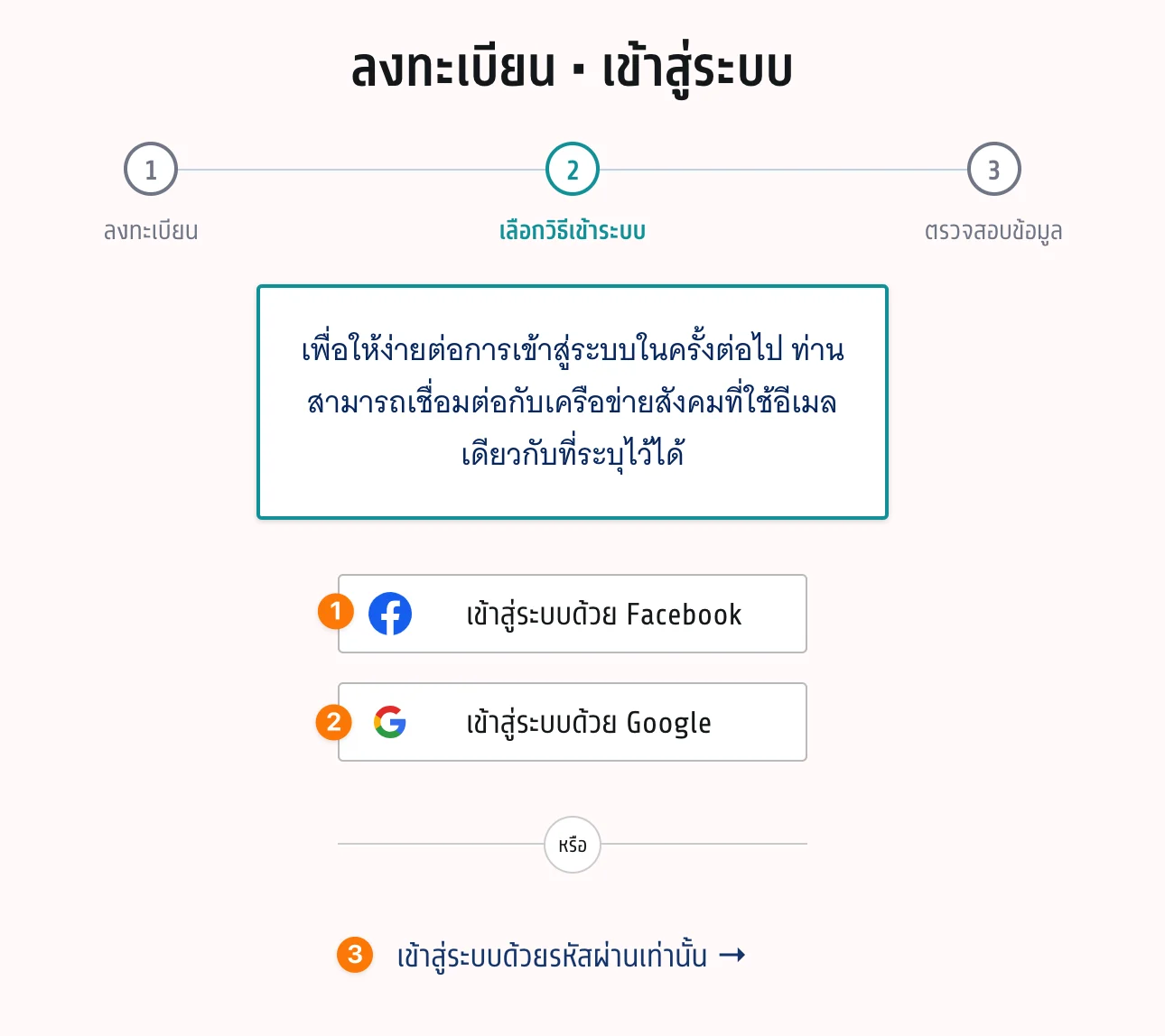 - สามารถเชื่อมต่อการเข้าสู่ระบบกับ Facebook หรือ
