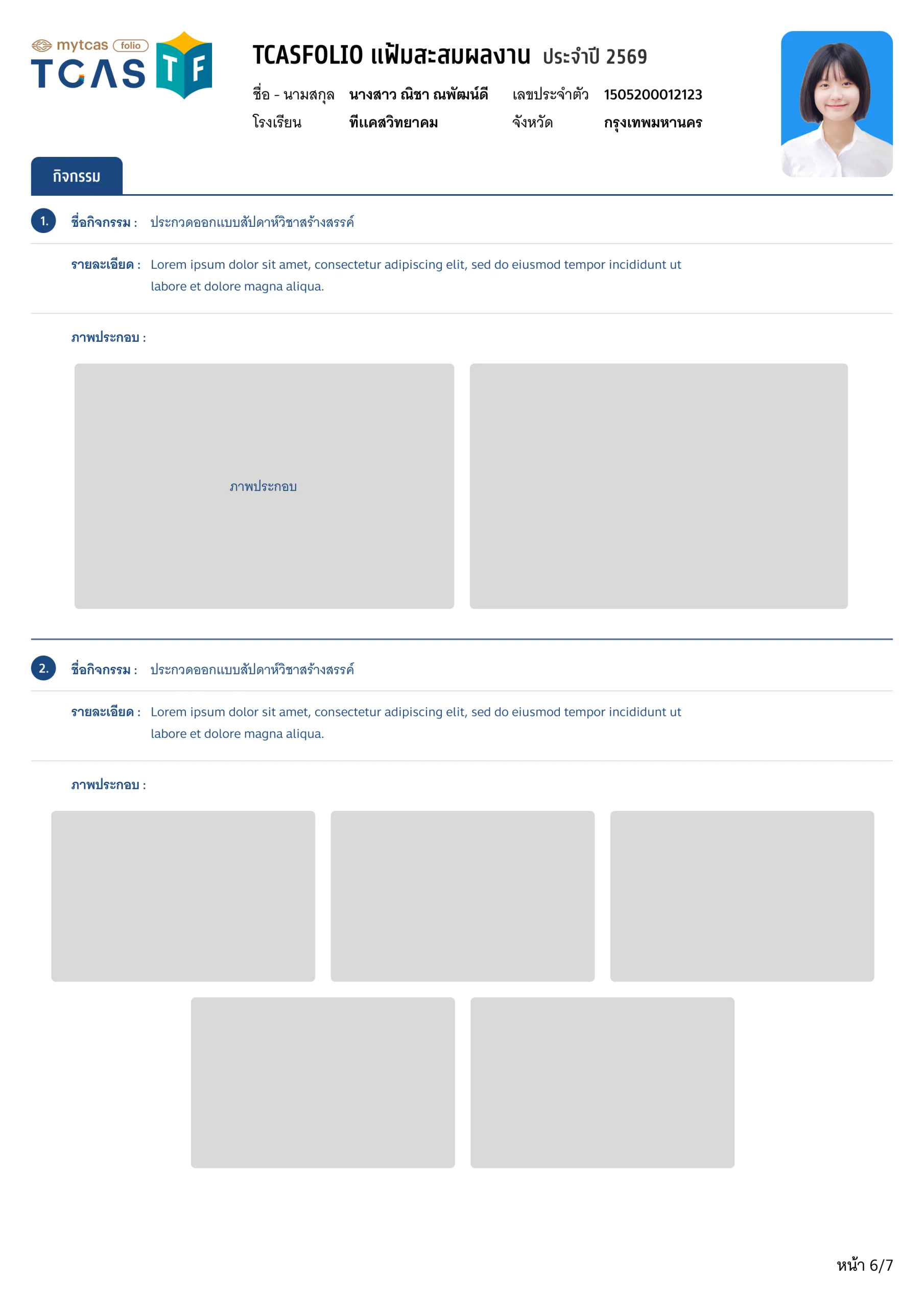 หมายเหตุ: ผู้สมัครจำเป็นจะต้องยืนยันตัวตนผ่านระบบ ThaiD จึงจะสามารถดาวน์โหลดและส่งออกข้อมูลแฟ้มสะสมผลงานได้