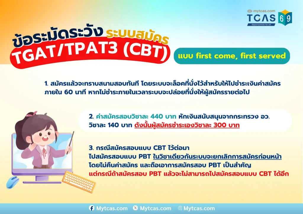 ข้อควรระวังในการสมัครสอบ TGAT/TPAT3 (CBT) แบบ First Come, First Served ![]()