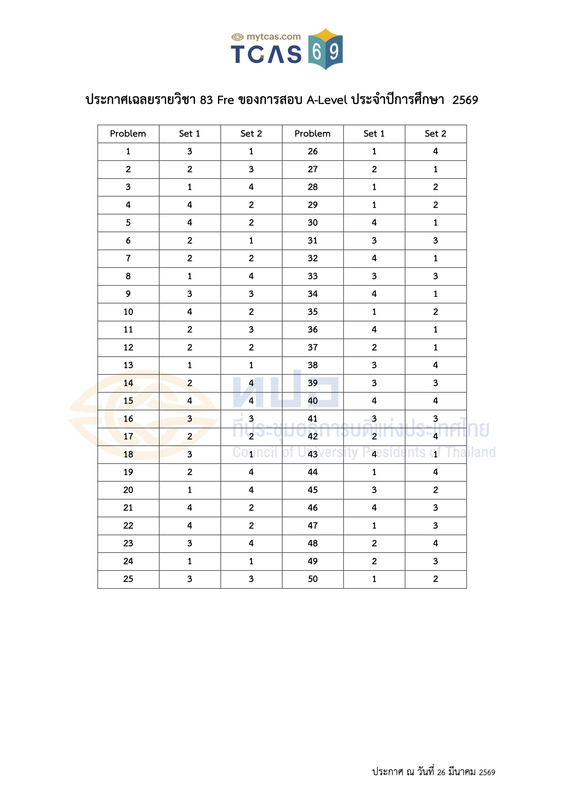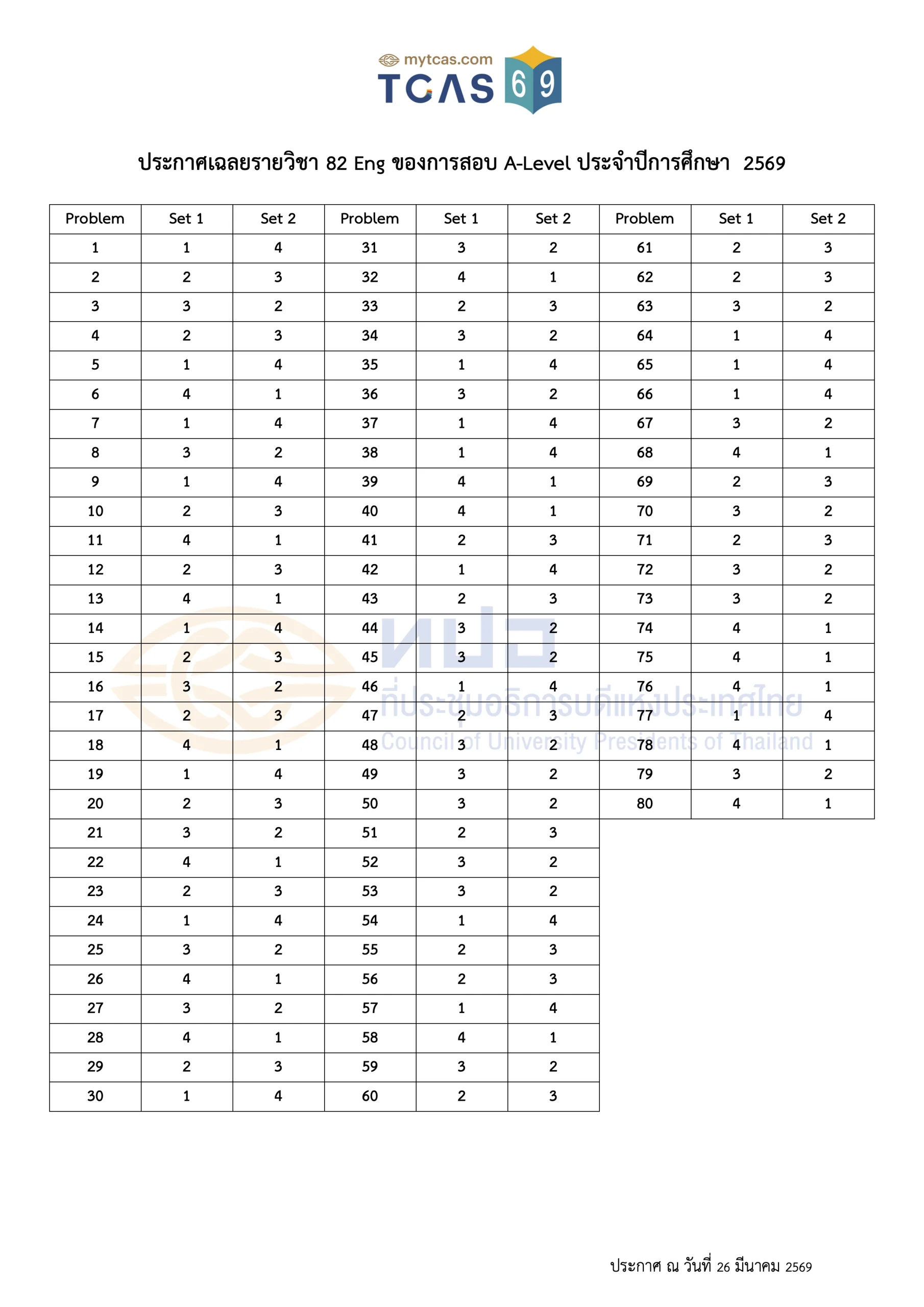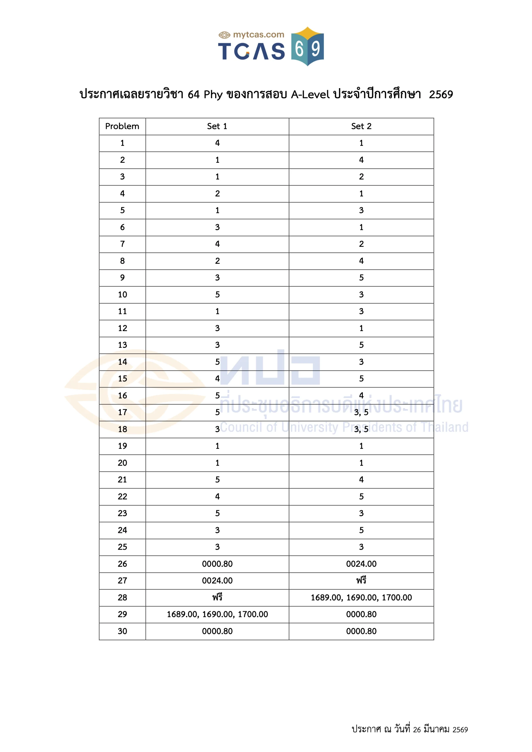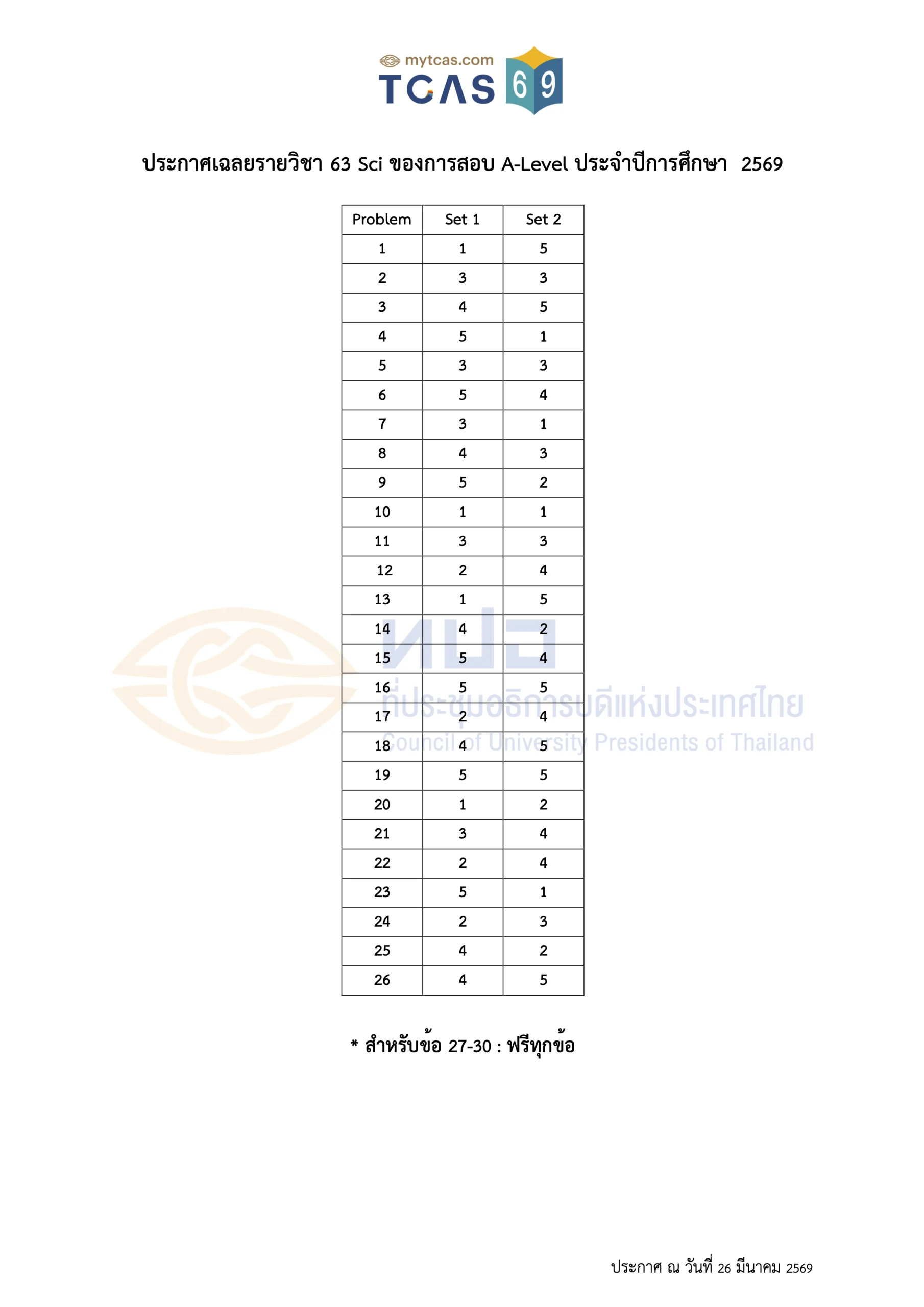 เฉลยข้อสอบ A-Level ประจำปี 2569