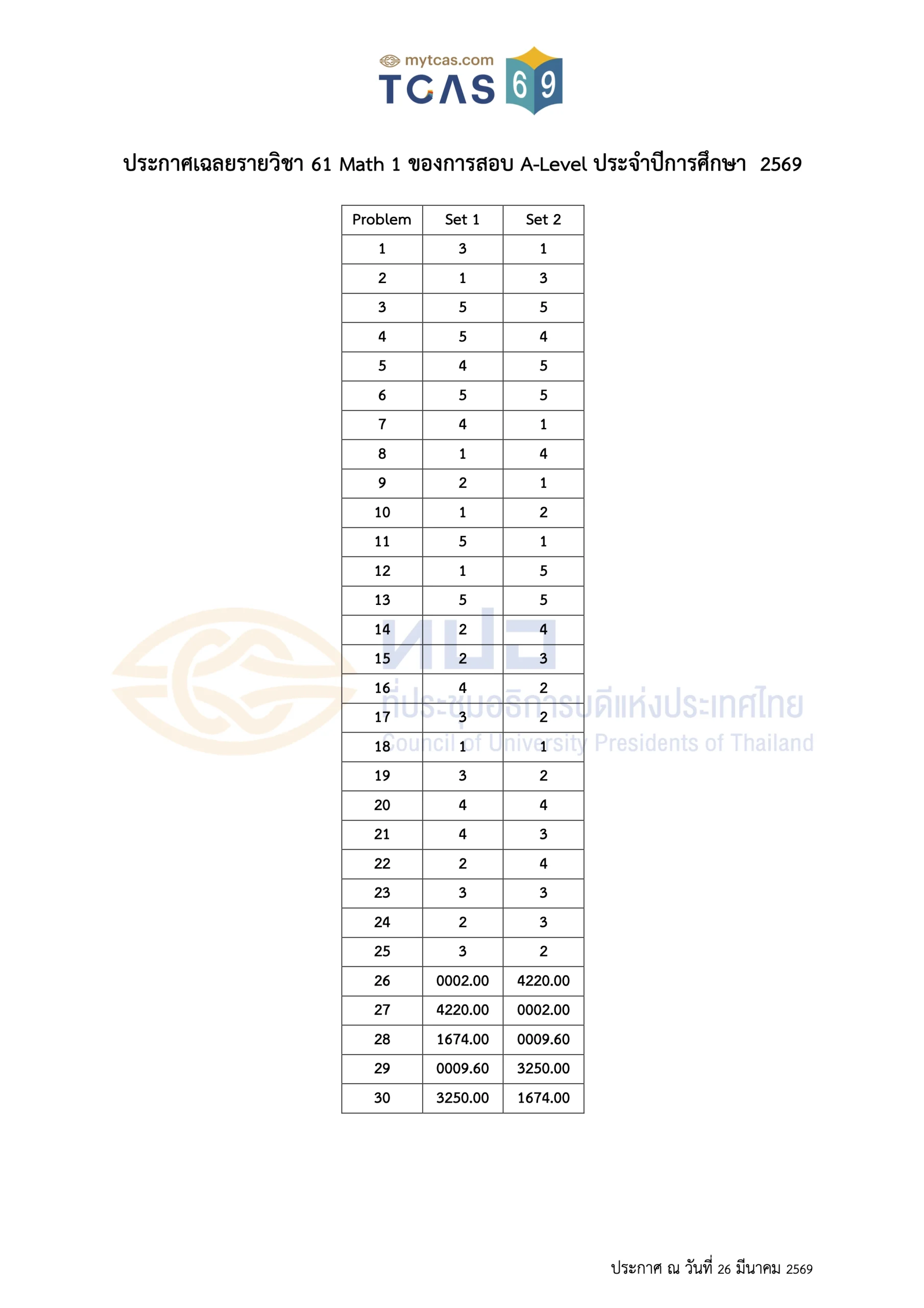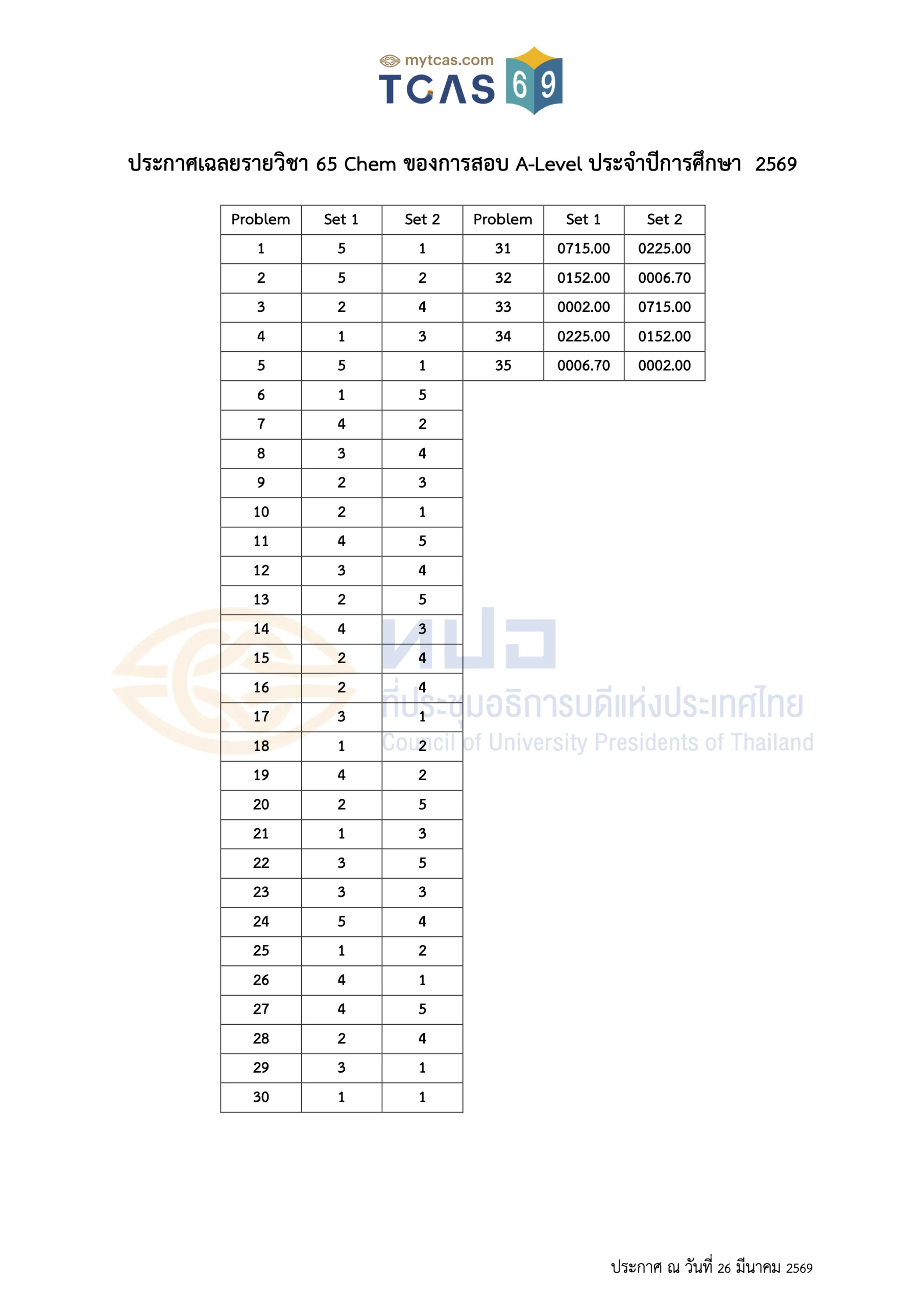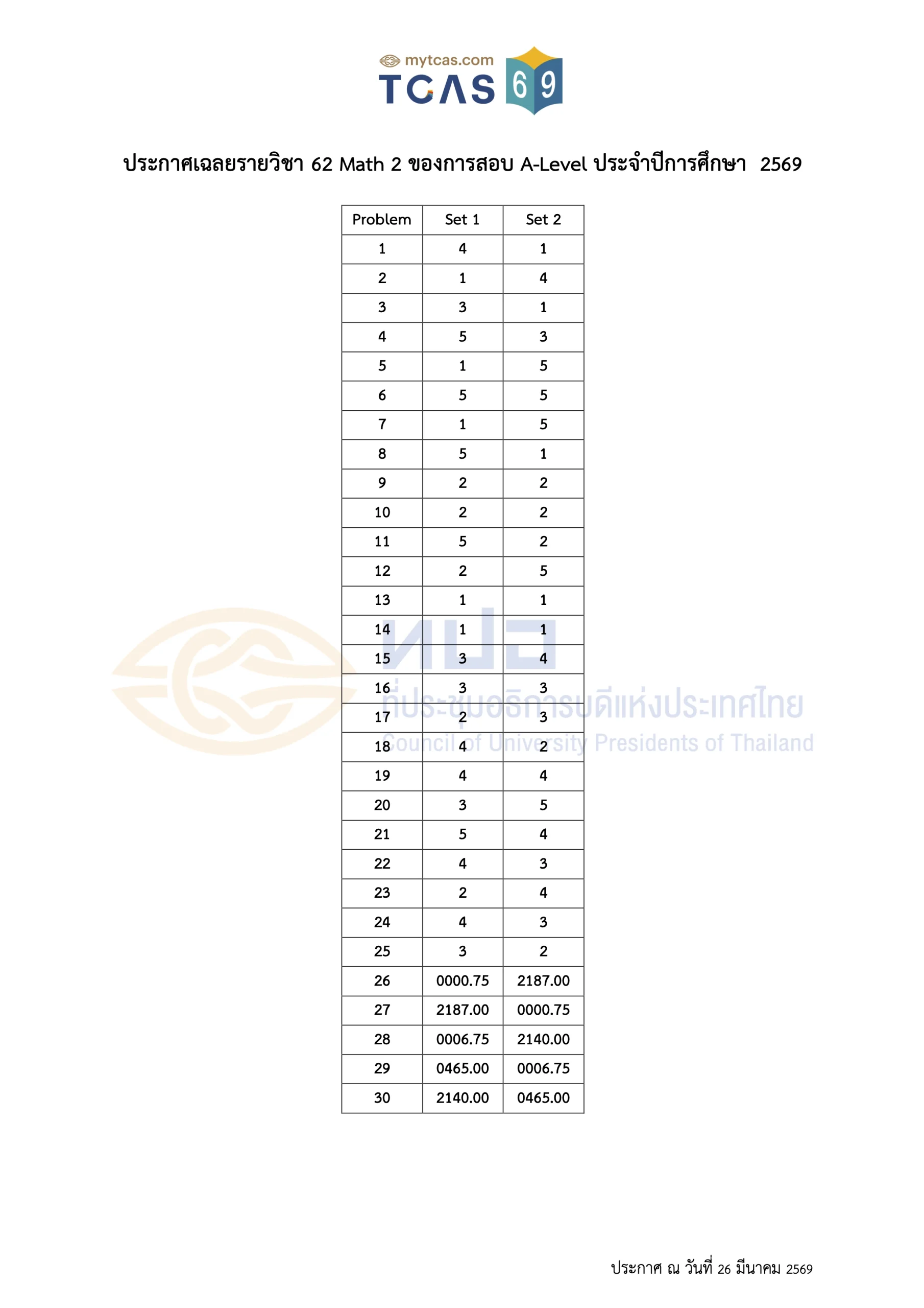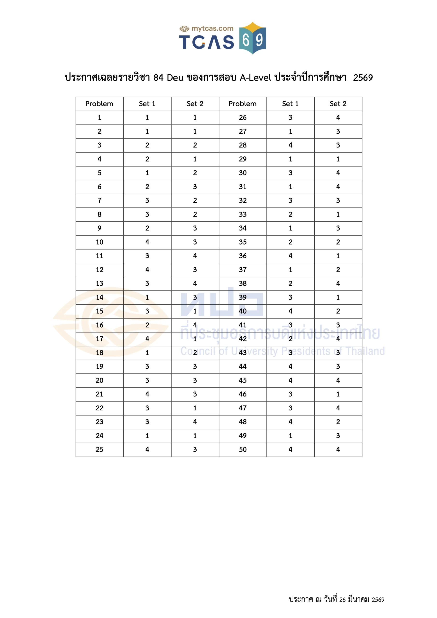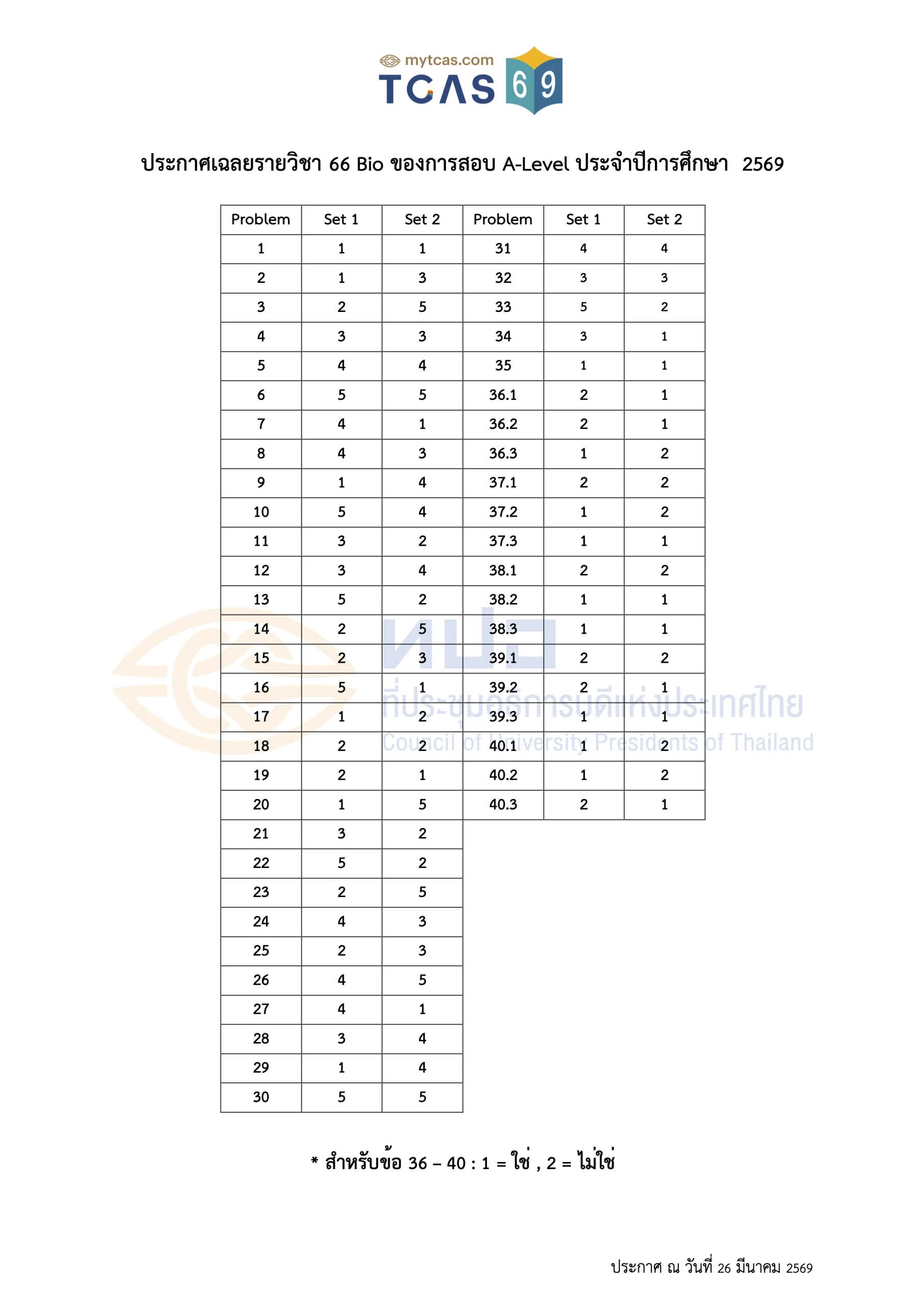 เฉลยข้อสอบ A-Level ประจำปี 2569